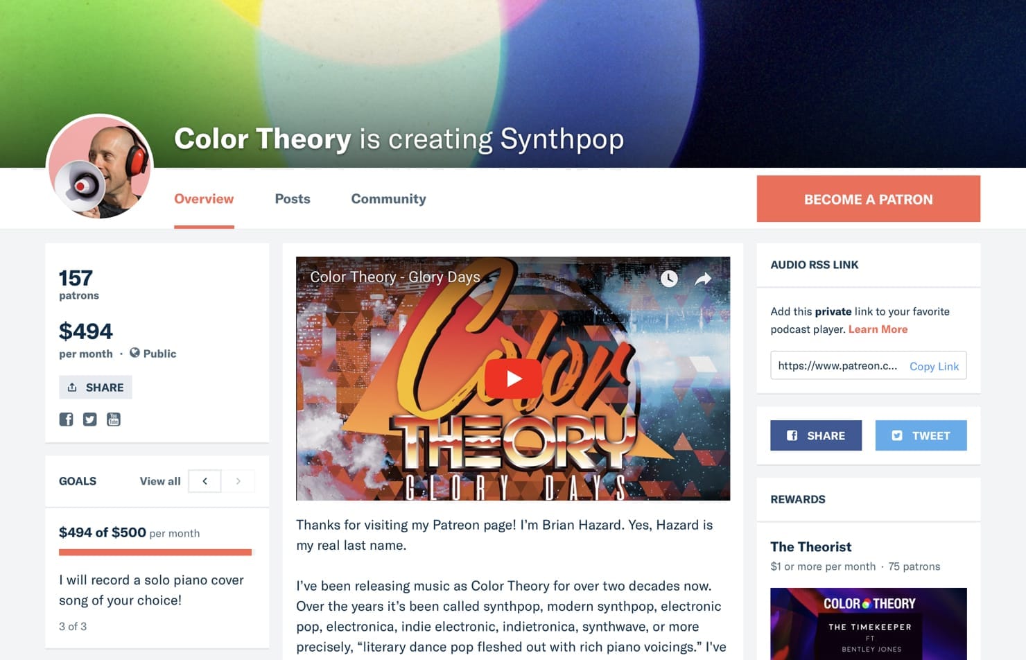 What comes next for the platform is out of my hands, but I’m sticking with Patreon for now! I’m convinced that patronage is where it’s at, and there’s no better option to date.This year I’m going to focus on the quality of my content and hope that my patron count increases as a result. Writing and recording a new song every month doesn’t give me time for much else!Your thoughts and advice as a fan, artist, or fellow Patreon creator are welcome and encouraged!MORE: The Dark Side Of Patronage: Just 2% Of Patreon Creators Earn More Than Minimum Wage