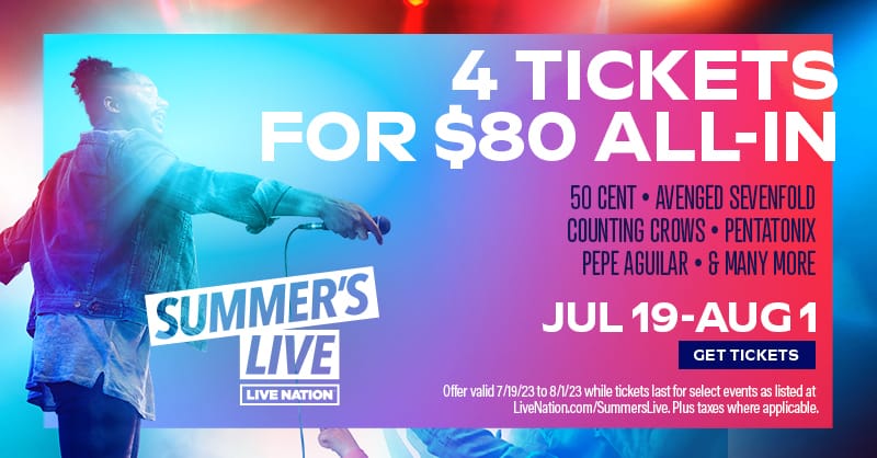 Live Nation’s Summer’s Live sale kicks off Wednesday, July 19 at 10 AM offering four tickets for $80, including all fees to over 2,500 shows by dozens of artists.