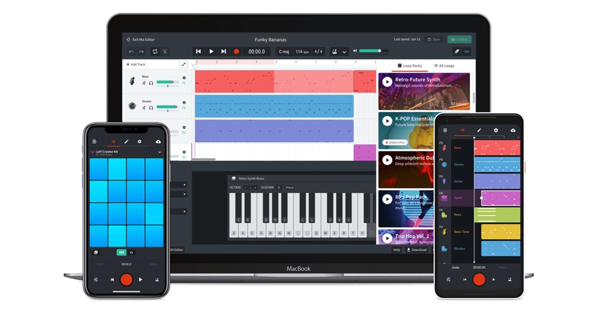 Like BandLab, Soundtrap is also available for iOS and Android, and it’s also powerfully collaborative. It offers plenty of MIDI instruments, samples, loops, and the ability to record your own audio.