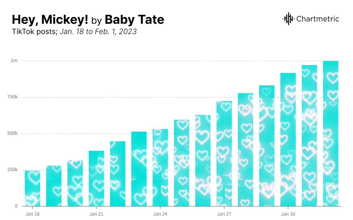 The rapper, singer-songwriter, and producer re-established herself as a TikTok delight after her 2016 song “Hey Mickey!” exploded in popularity on the app, where it now sits at 1.6 million posts. In a 15-day period at the start of 2023, the song went from being used in 250k to 1 million posts. “It’s really crazy the things that that app can do,” the 27-year-old told Billboard in March.