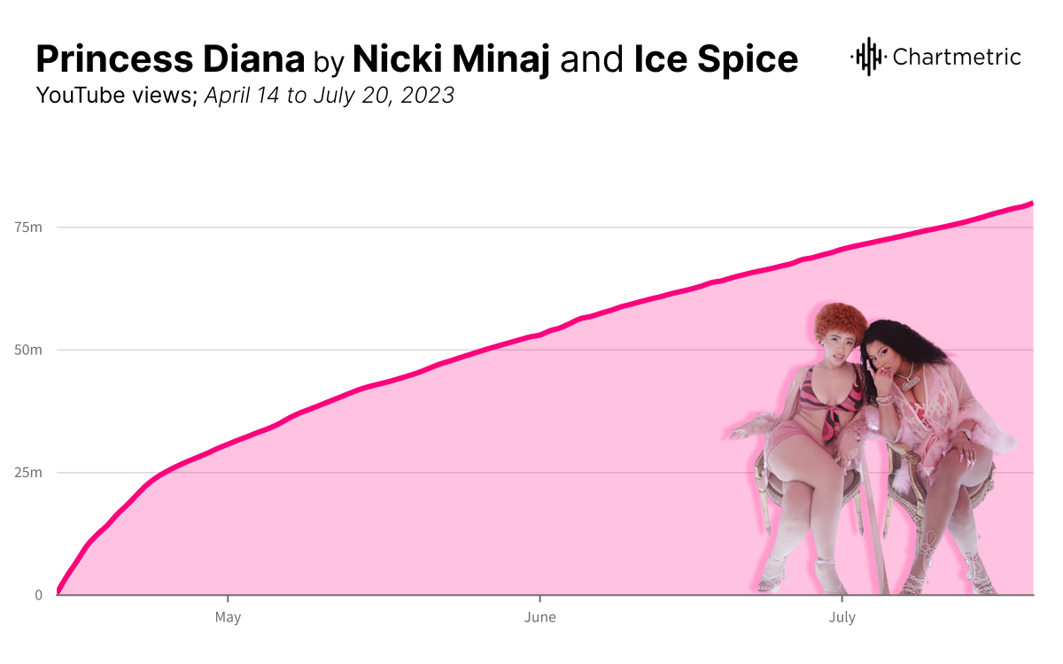 In April, Ice released a “Princess Diana” remix featuring Nicki Minaj. The chemistry between the two in the soft-pink monochromatic video felt like a passing of the torch between two generations of rap fans. The video went on to receive 80.9 million views on YouTube, making it Ice’s most-viewed video on the platform, and proof that a follow-up could not only be imminent but profitable.