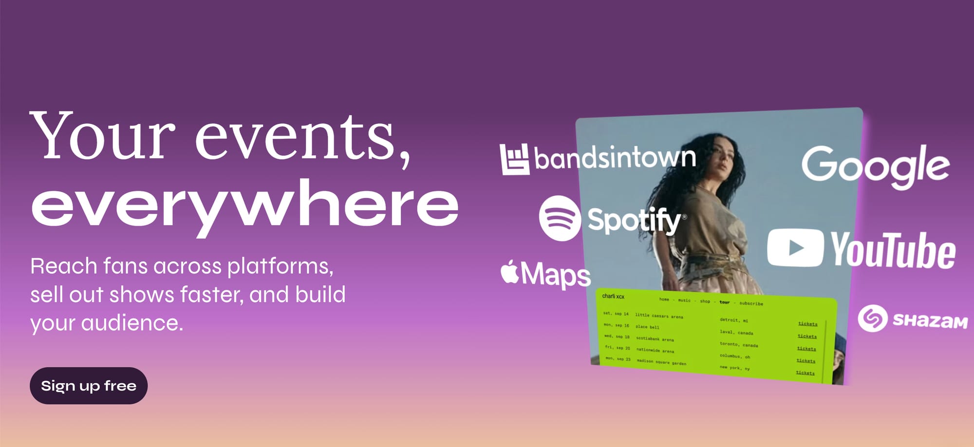Best for: Show promotion, tour discovery, and fan communication.