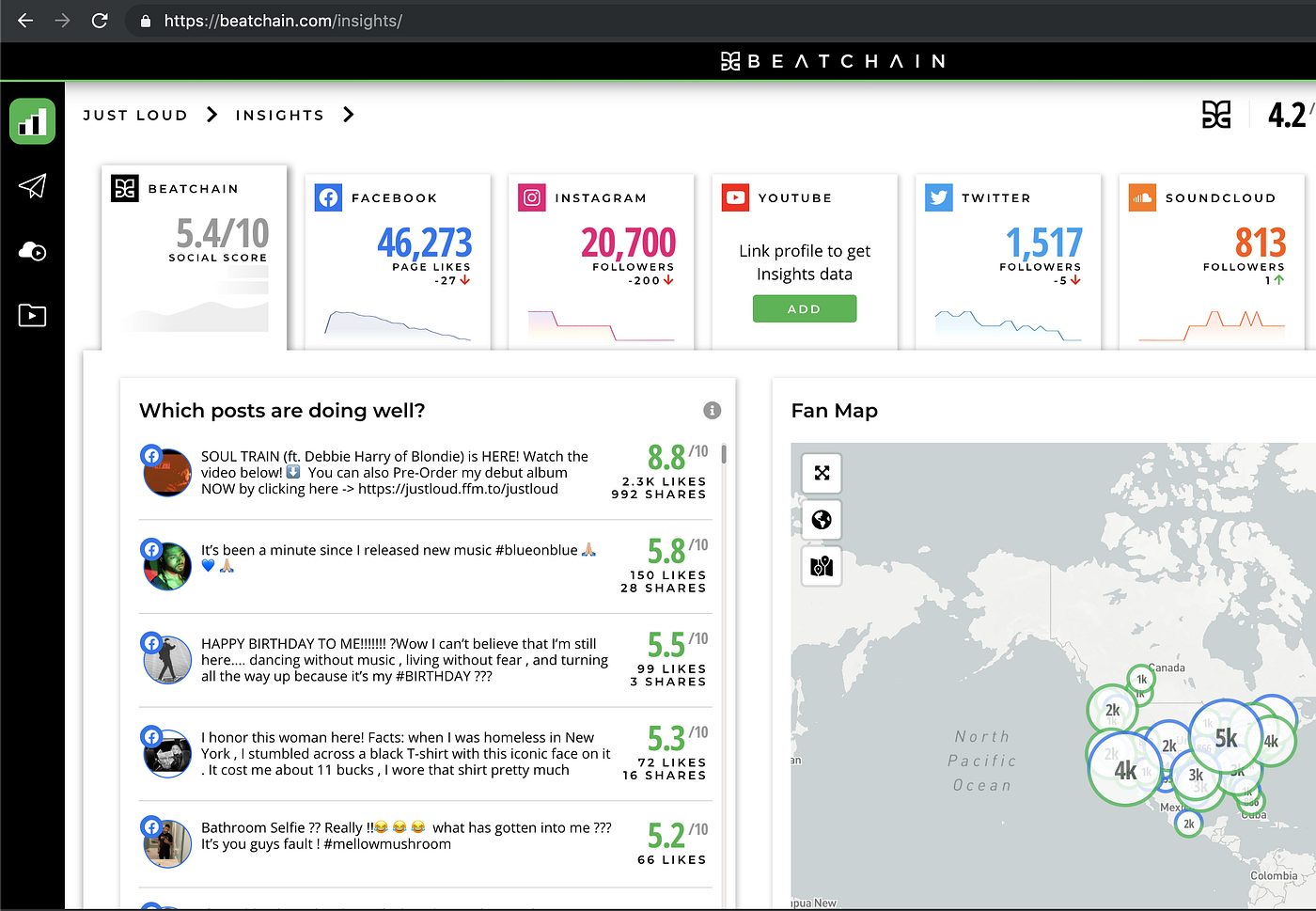 Your social media following is key to advancing your career in music, particularly if you’re an independent artist. That’s why you need to get your mix of content right, and build a good relationship with your fans.In order to avoid appearing too pushy and “salesy”, we recommend that no more than 1 in 3 posts is trying to get them to buy or stream something. Remember, they don’t follow you on social media just to be sold to!Make posting a regular habit, and try not to overthink or wait weeks for something ‘postworthy’ to happen. Use the Launchpad within the Beatchain app to get a steady stream of content out to your social media pages, and watch where the gaps are in your scheduling. You can also keep tabs on how all your posts are performing from the insights dashboard.