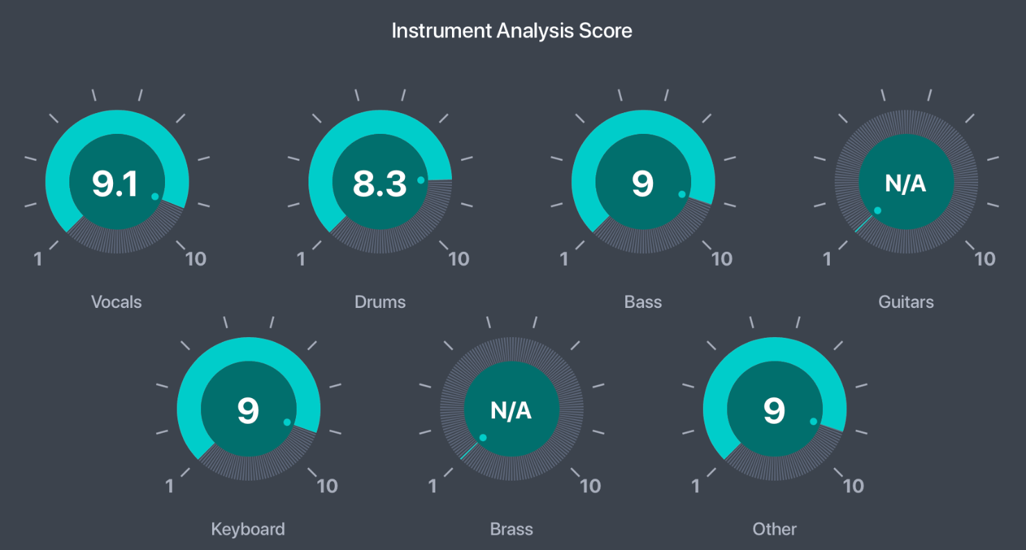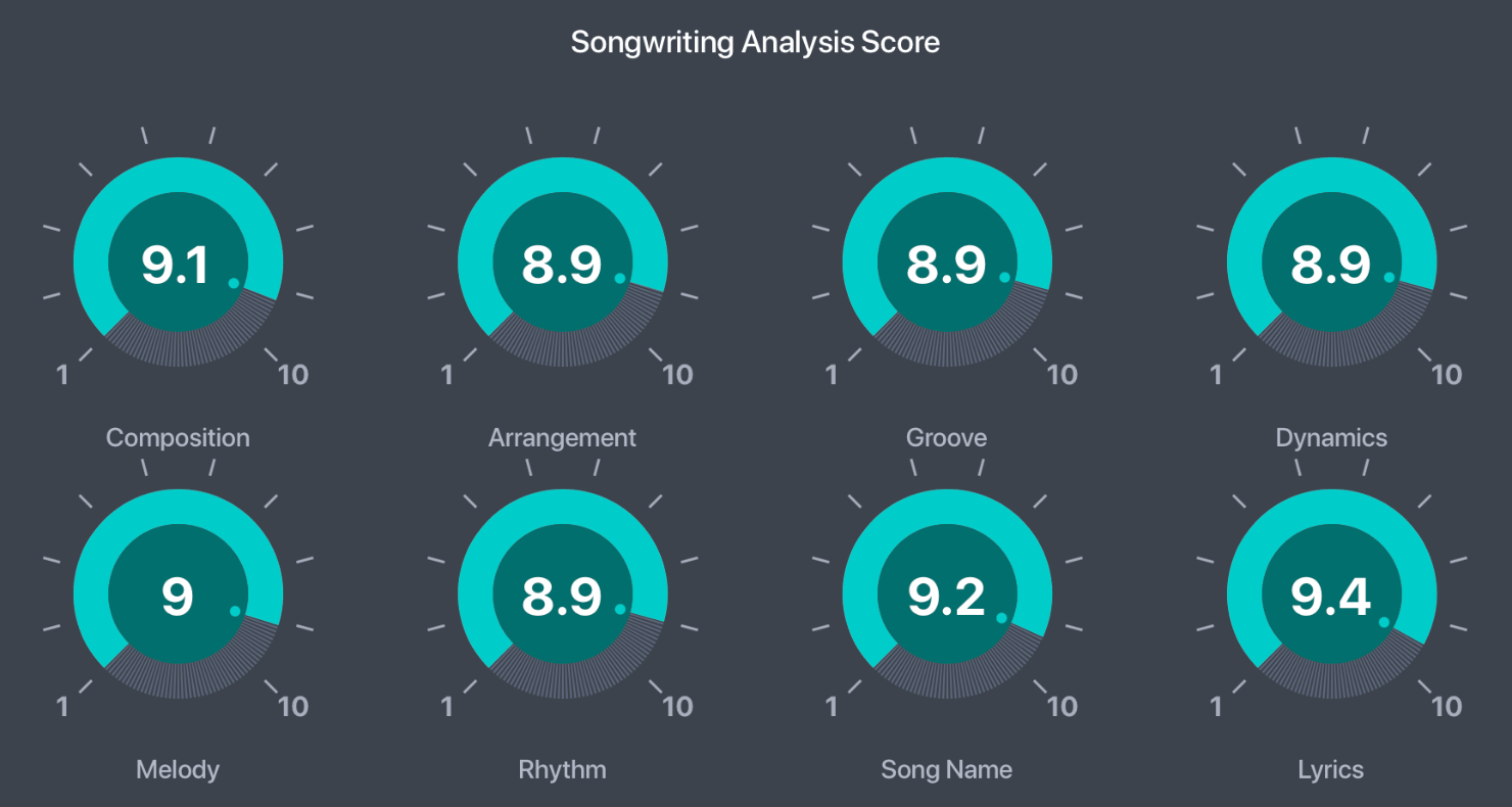 The first of three advanced insights modules, the Songwriting page cuts right to the chase:Next we’ve got scores for eight aspects of the song:Followed by: