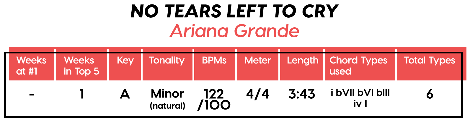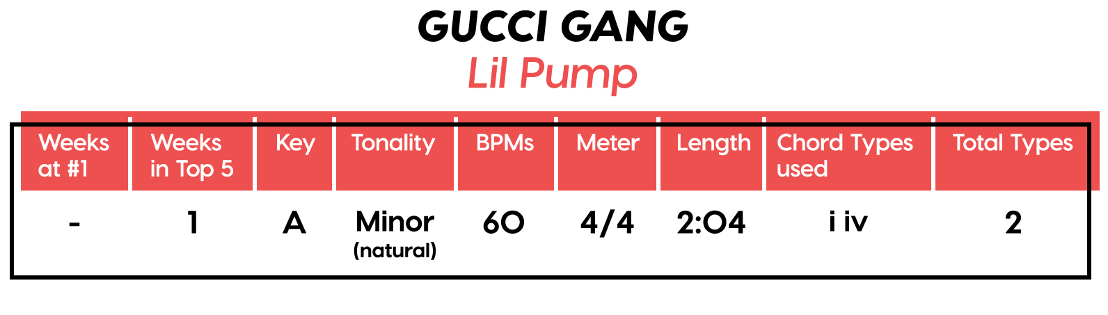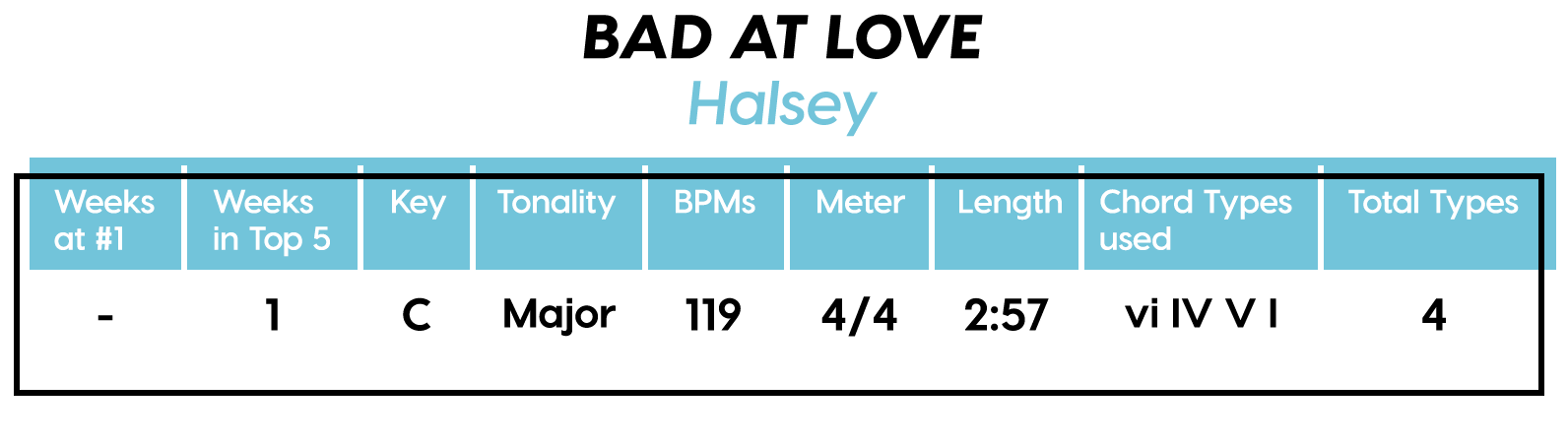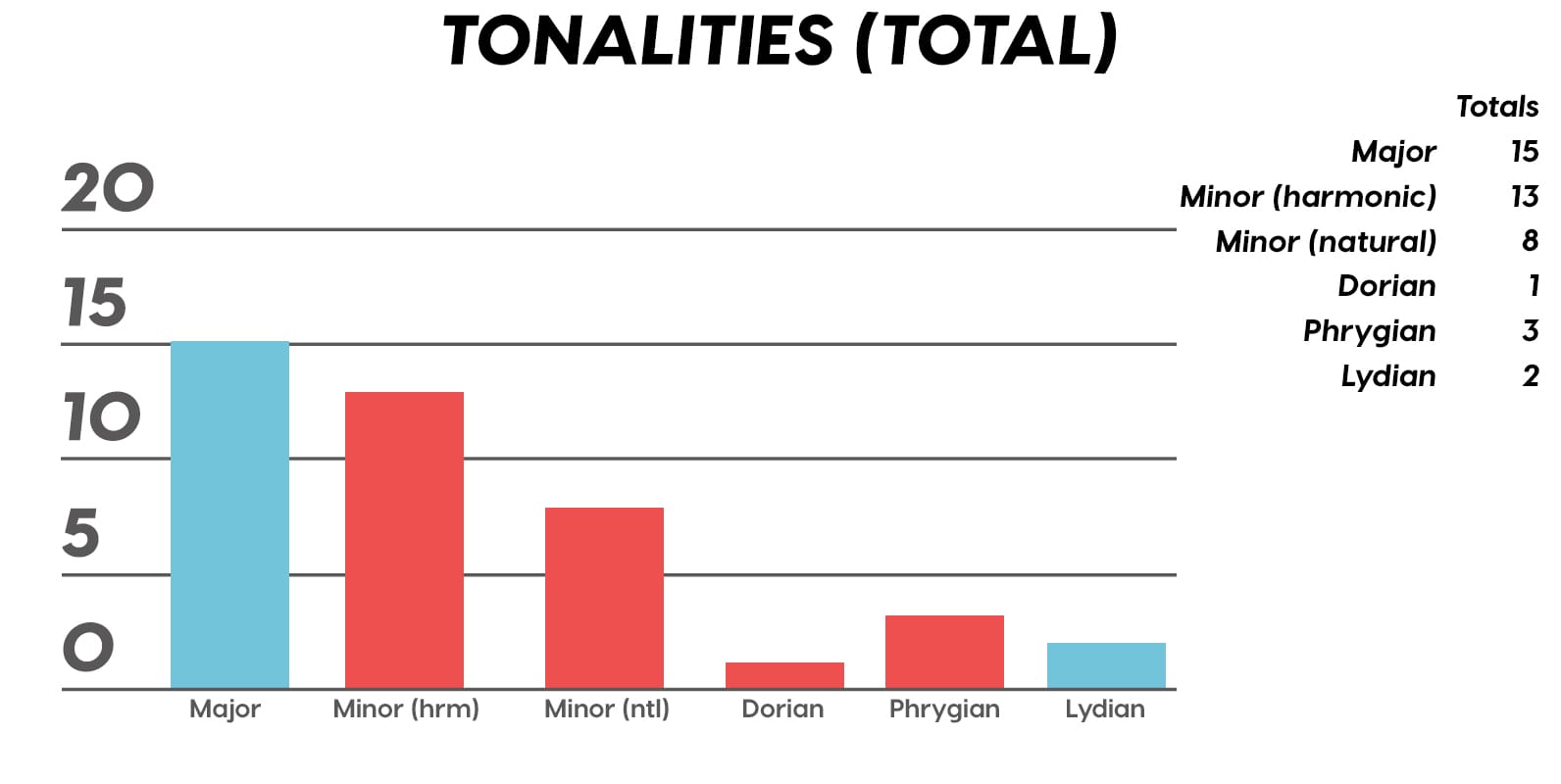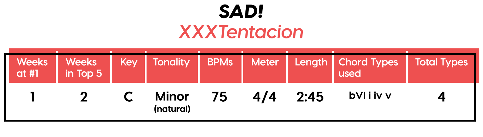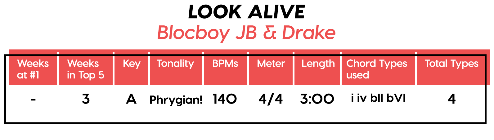 Guest post by Dean Olivet of Soundfly's Flypaper“My Mount Rushmore is me with four different expressions.” – Drake. Yes, Drake, yes it is.Welcome back, pop music scholars, and Look Alive… because we did it again.That’s right — we sent an even Better Now, out-of-this-WRLD probe past all the FEFE’s and ZEZE’s that were Meant to Be in the Top 5 of 2018’s Billboard Hot 100 charts, and what we got back was a tally of data and stats Grande enough to satiate all you Nonstop audiophiles’ consonance curiosity. Nice for What? Nice for showing any Childish Young Bunnyhow to craft a songXXXTensive enough to bang its way into a Top 40 slot, next year and beyond.Speaking of Top “40,” that’s literally what this year’s list totaled (all by itself this time!). Yep, there were 40 songs “Boo’d Up” in the Billboard’s Top 5 in 2018. Exactly 40 — how clean is that?Just like last year, our master song specs charts are up first, including: 2018’s trendiest tonalities, keys, tempos, meters, triads, song lengths, chord totals, form sections, and singer genders (compared, of course, to the number of times Drake himself shows up in this list). And below all these veritable knowledge bombs, you’ll be amazed to find individual stats and commentary for all 40 songs!“To B, or not to B.” That is… not a question this year, because none of our songs were in the key of B! It was E♭— minor, specifically — that was our huge winner this year (black keys on the piano in general, really), with low showings for the keys of D and E, once again proving that nobody writes Top 40 pop songs on their guitars anymore.Since we had some Lydian keys this year, and Lydian is technically a major mode, I lumped these songs in with the major column — above, at least. Below you can see these separated out.Very similar tonalities used this year, as compared to 2017. The major mode gained a little ground this year, chalking one more song, but it’s those sneaky-sultry minor modesthat are still dominating. Worth a shout are the upticks in Lydian and Phrygian, and it’s also interesting that harmonic minor scales doubled their representation from four songs to eight. Maybe the V chord is coming back in style after all?Similar to last year, songs lasting between 3:21-3:40 remain on top. The most improved category is the 2:41-3:00 song, increasing its presence sevenfold! And, as long as we’re talking songs and lengths of things, can we talk about Drake already? This is like the seventh paragraph and we still haven’t mentioned the length and breadth of Drake’s magnum double-album opus, Scorpion.The week his shipping container of beats and buddies dropped (Billboard week of July 14), His Eminent Drakiness had 22 — spell it out: twenty-two effing tracks — that made the Billboard Hot 100 that week. The lowest of which appeared at #57!What’s this have to do with song lengths? Mainly, this unheard-of achievement outlines, among other things, that song lengths, album lengths, and music video lengths just don’t matter as much anymore. Why?Because of streaming, because of fancy new Corolla dashboards that talk to you and stuff — that’s why. No, radio is not dead. Not yet, at least. But when you can listen to basically whatever you want, whenever you want, without going to the record store with a million bucks, you know that the days when songs-for-the-masses had to be on the shorter side and, I don’t know, be by different people — yeah, those days are gone.Looks like a pretty even tempo spread this year with 77-78 BPM eeking out a win. From 71-72 BPM there is still a gap in the chain, similar to last year, and from 113-118 BPM is still a very curious drought-land, at least when compared to all the tempos found in Rolling Stone’sGreatest 500 Songs of All Time list.I’m not sure if it’s interesting or anti-interesting that our meter chart matches almost exactly with last year’s, at thirty-seven 4/4s, two 12/8s, and instead of the uncommon gatling gun 24/16, we found a somewhat-rare-in-its-own-right 2/4 meter.3/4 time is still at large — anyone with information as to its whereabouts please contact: The Pianoman at 555-Lala-didada-dadum.Now let’s look at some anomalies for roman numeral chord types used. For instance, the iii and♭VII chord types appeared well above and below their average rates, respectively, and both the major and minor tonalities managed to borrow their opposite tonics, so that’s a fun spice you don’t often get to taste.Also, as our♭II chord types were technically diatonic (aka “regular”) to the Phrygian mode, our non-borrowed-or-secondary weirdo-chords this year were the viis (when it was once a ii/V/♭VI and once diatonic to Lydian) and also a I+ (augmented).Here we see that we’ve flattened out into a bit more of a bell curve rather than that middle-finger looking thing from 2017, with the four-chord song still being the norm. Panic! at the Disco threw some jazzy borrowed and secondary chords our way and pushed the collective envelope one column further than 2017, with an all-out eight-chorder.Pre- and post-choruses were a little less aggressive this year, even while variations on these chorus-abutting sections saw an increase. Interestingly, only “The Middle” dispensed with any intro material this year, and only Eminem’s “Killshot” got into the Top 5 without any chorus or refrain material, but I mean, he did say right at the start of the song that he wasn’t gonna repeat himself, so there you have it. (And yes, I said “chorus-abutting sections” back there, and yes, I had Morgan Freeman’s voice in my head when I said it … “chorus-abutting sections.“)Oh! And look up over there on the right. I’m very excited to share with you a new statistic I collected this year. Would you believe that 22 songs out of 40 were based off of just one single loop only (loop variations allowed)? That’s more than half. You may now com