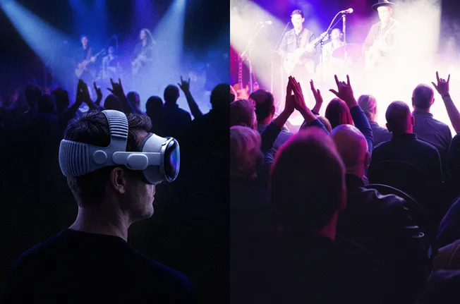 Using dual-8K stereoscopic video, spatial audio, and head-tracked mixes, the experience is built to recreate the feeling of standing just a few feet from the stage — letting viewers choose their vantage point and experience performances from angles that wouldn’t even be possible at a real concert.
