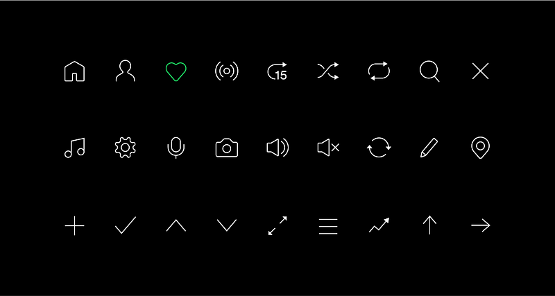 Guest post by Andrea Limjoco and Rob BartlettUpdating the Spotify icon suite was a four month process of creating and implementing six hundred individually crafted icons that had to look and function well across all of Spotify's products.Redesigning an entire icon suite (which hadn’t been updated in 3 years!) was a bigger task than what we anticipated. We encountered 3 key challenges that helped inform these icons:1. Visual:We wanted to design an icon suite that was original and bold (in style) to reflect our brand. At the same time, we wanted the icons to be simple and remain elegant over time.