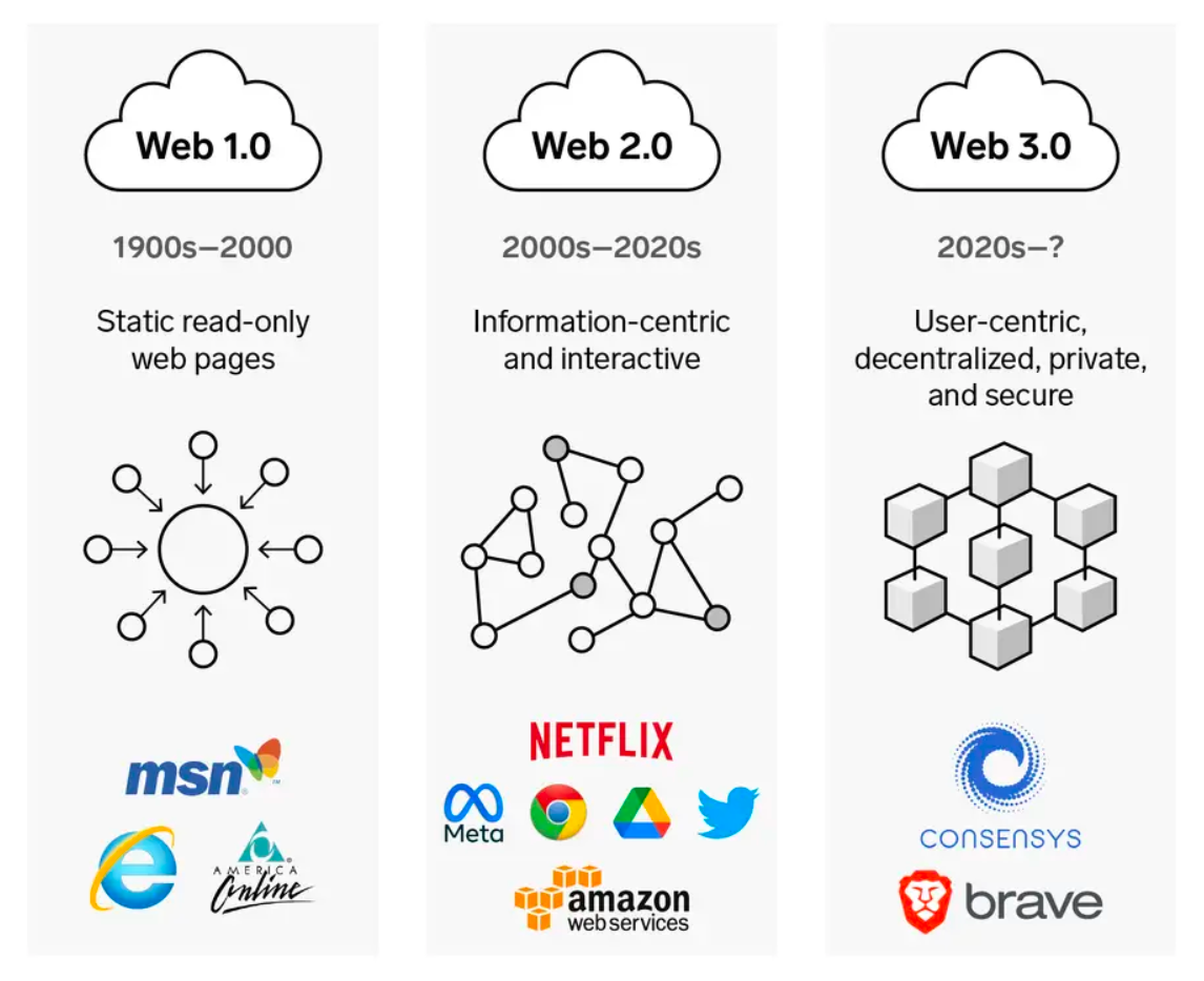 Web3 is a term used to describe a new form of the internet that embraces decentralization and ownership. The evolution of the internet has been described in 3 phases: