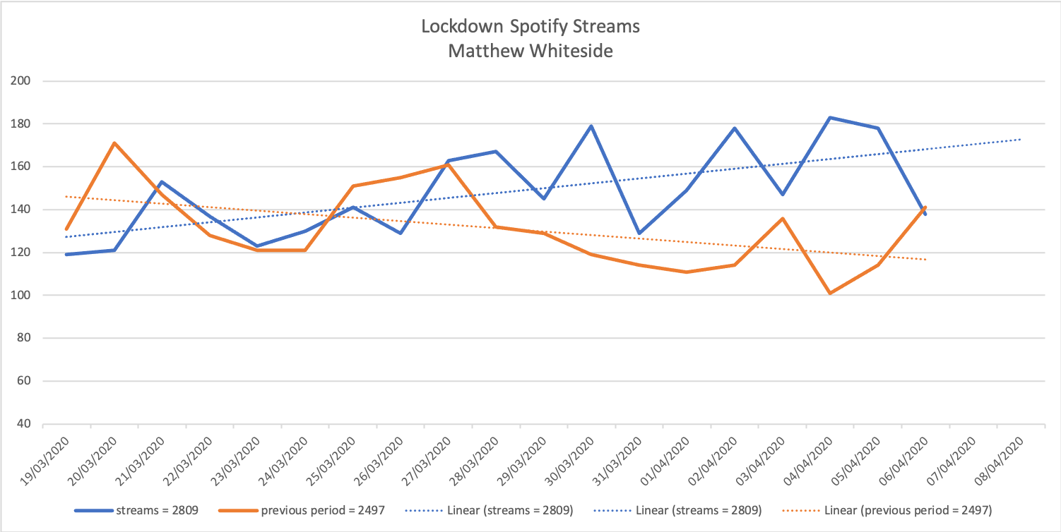 There have been many articles recently talking about overall streams being down in the recording industy because of the current Covid 19 Pandemic. This article in Verity suggests the 7.6% drop is caused by a mix of people not listening while commuting and increased engagement with TV and News and I’d also suggest because Cafes and offices aren’t open with their streaming playlists. It will be interesting to see what increase in stream payment rates this reduction in streaming numbers has given the way the payments are calculated.