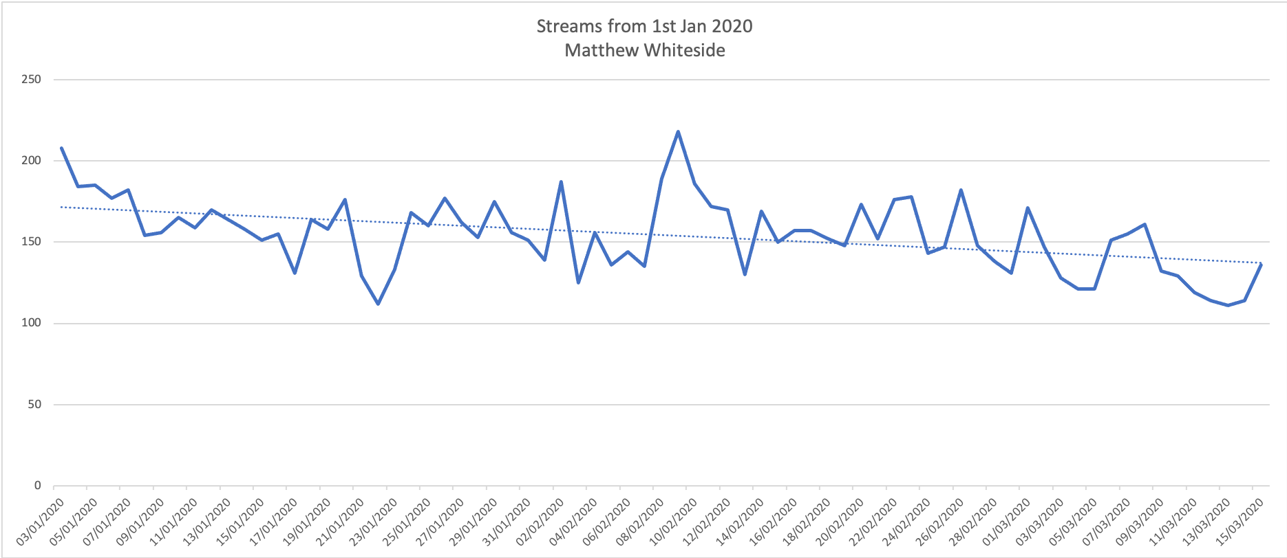 I’ve had a look at my Apple Music for Artists and there isn’t a comparable trend. They don’t seem to allow you to download the data in the same way as Spotify so can’t do a similar analysis. But Spotify and YouTube are two of the most popular ways people listen to music so the combination is interesting enough.