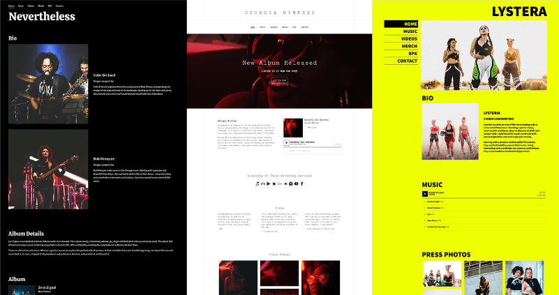 Bandzoogle’s new expanded EPK options allow artists to choose from four preset templates: