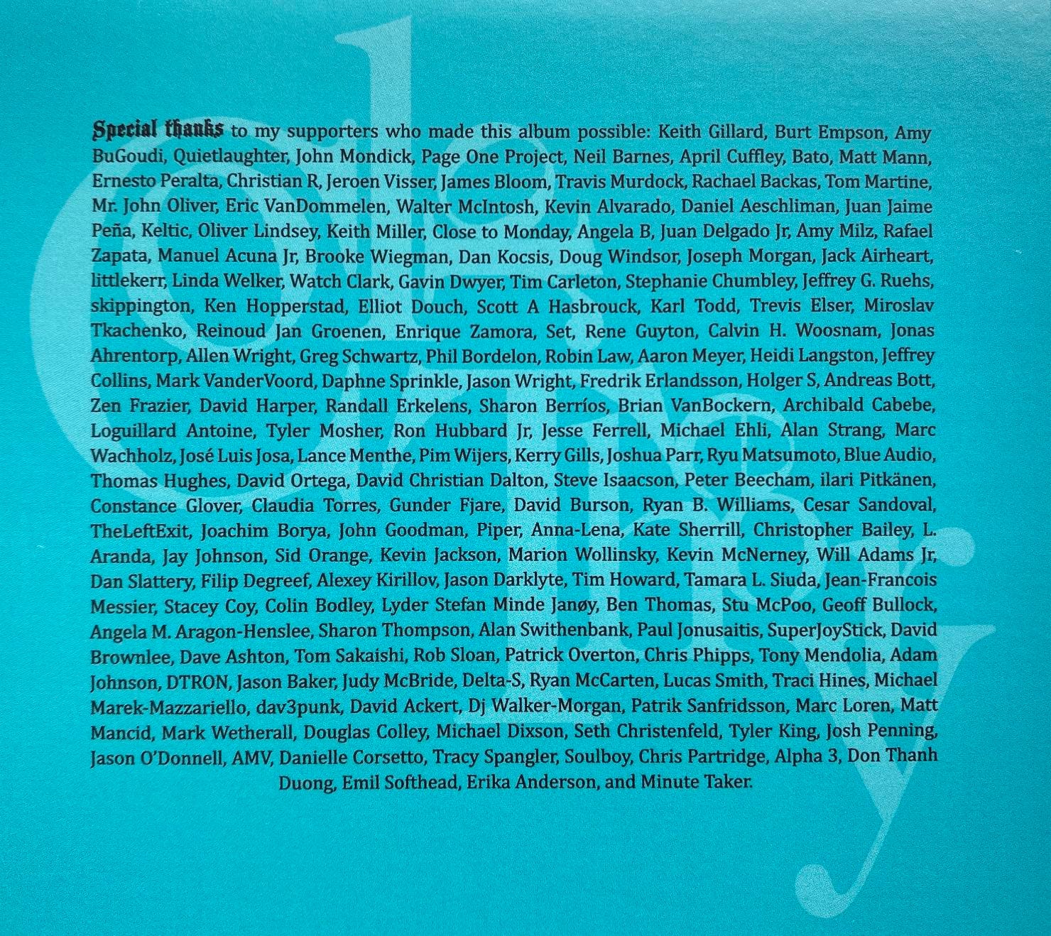 My offer was simple: become a patron at the $3 level or higher before midnight November 8, and I’ll include your name on the CD.