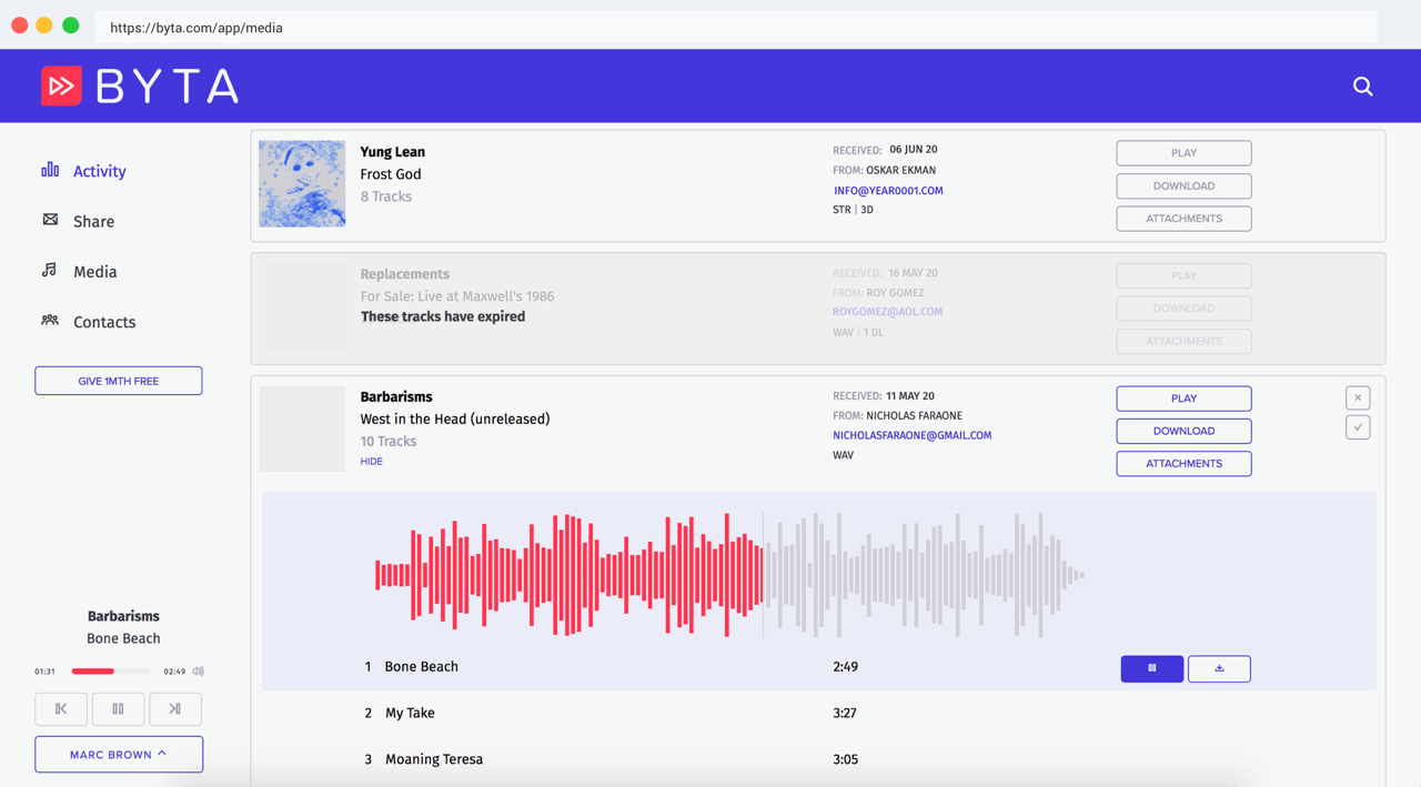 Byta describes itself as “the platform for music before it’s on streaming services” and enables the transfer of digital audio. Its users from bedroom artists to the major labels.