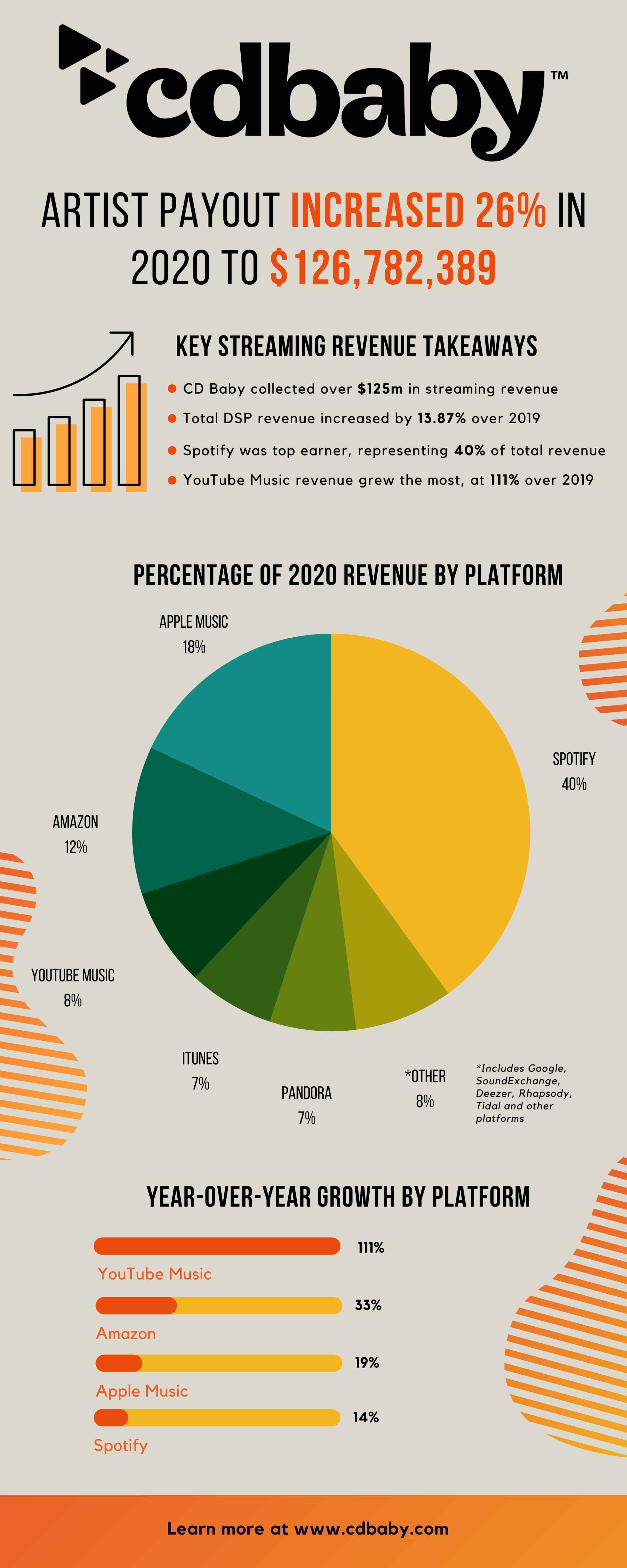 [UPDATED] CD Baby saw revenue from Spotify, Apple Music, and other streaming services increase 14% in 2020, bringing in over $125 million in streaming revenue for their artists last year.