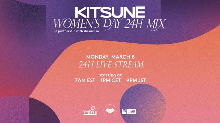 Today’s event will begin as a 24-hour live stream on the Bandsintown LIVE Twitch channel today March 8th, followed by the release of a 24-hour audio mix compilation on March 9th on Kitsuné Musique’s Soundcloud channel. Save the date to tune in and help empower women all around the world through music.