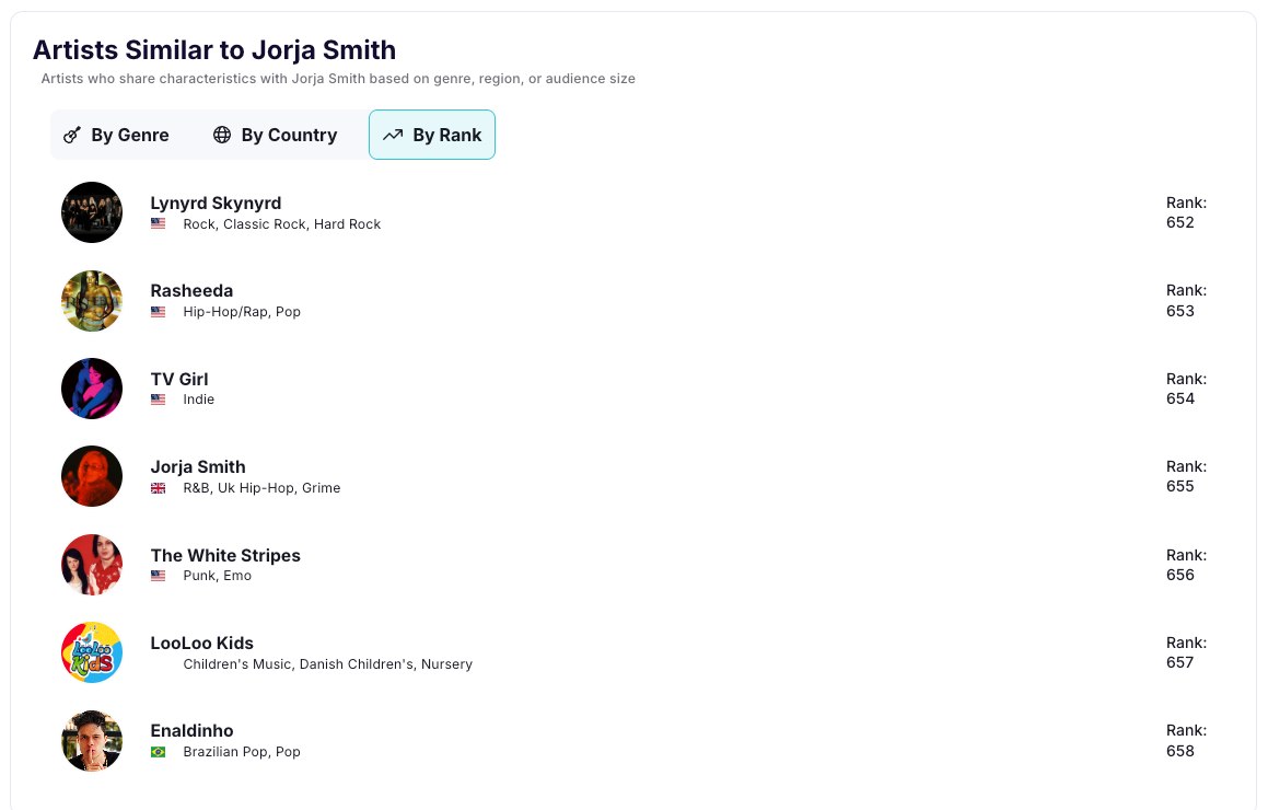 Intelligent Benchmarking is now live across artist profile pages, providing immediate context for all your key metrics. No setup required—simply navigate to any artist page to see performance rankings and detailed comparison insights.