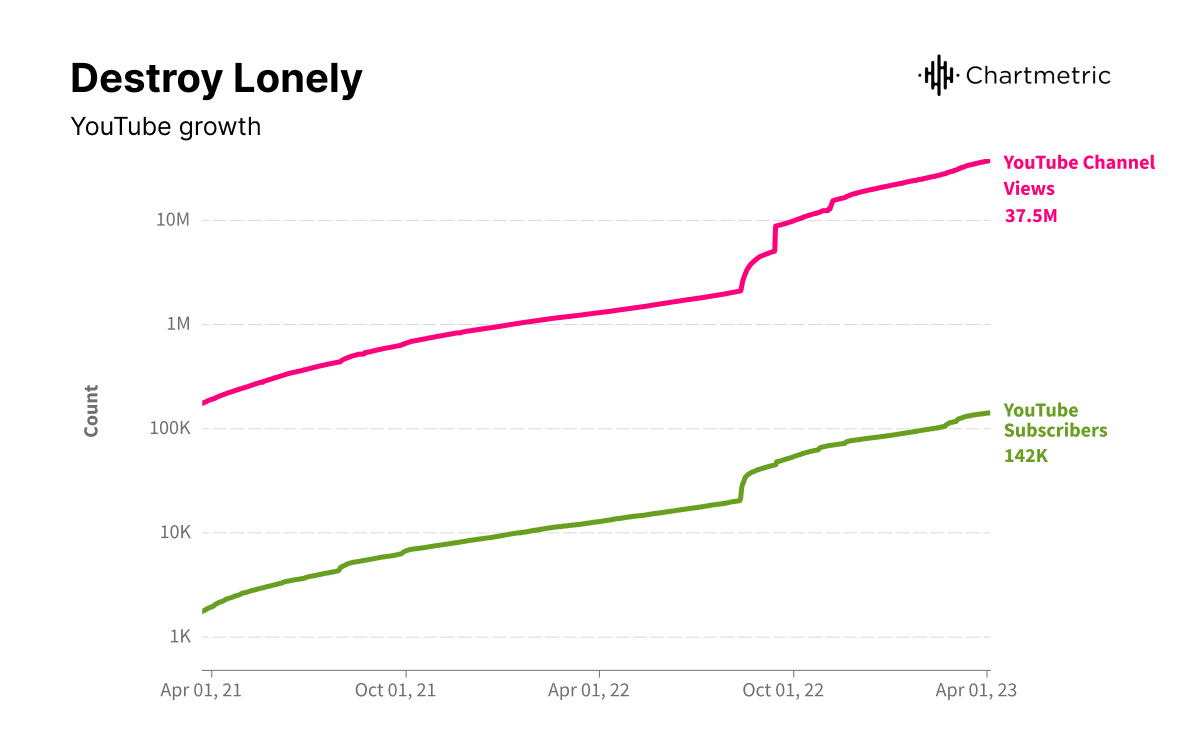 Destroy Lonely has been making massive waves in internet rap’s everchanging vortex. In 2021, the Atlanta rapper signed with Playboi Carti’s label, Opium, where he released No Stylist, a 19-track project bringing fans into his euphoric soundscape. Before releasing “if looks could kill” last month, the single leaked and became hugely popular on TikTok and Souncloud building anticipation for its official release. After garnering over 14M Spotify streams and landing on coveted playlists like Rap Caviar, Destroy Lonely’s growing popularity is positioning him as a must-see this festival season drawing crowds at Rolling Loud, Bonnaroo, and Lollapalooza this year.