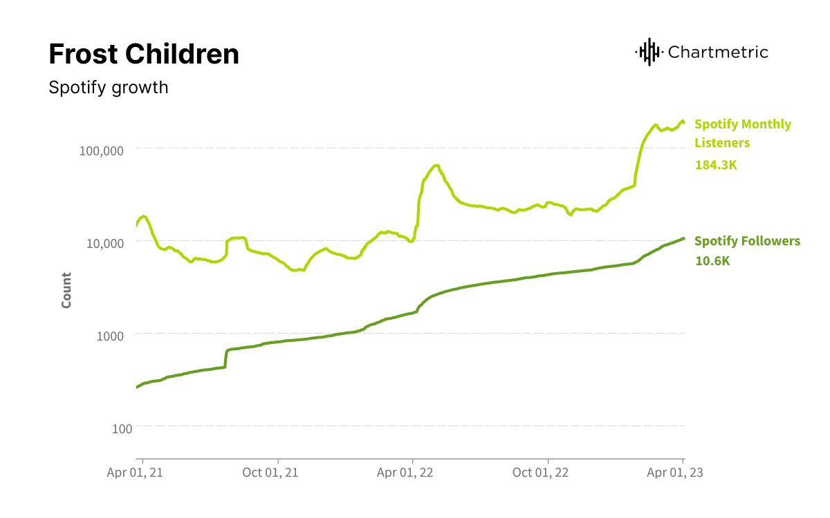 When evaluating emerging music at Third Bridge, we look for rapid changes in Artist Rank for evidence that an artist is gaining traction. It’s a strong initial signal that something interesting is happening on streaming platforms, social, or both, and from there we can dig deeper to understand the nature of the uptick. While changes in Chartmetric Artist Rank don’t in and of themselves confirm that an artist is emerging according to our criteria—sometimes, it can just be a result of new music being released after a period of inactivity—it does provide a sort of “first look” that something important may be happening.