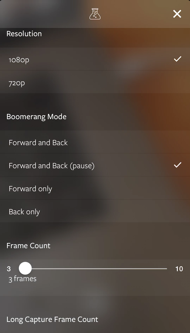 Just like some of your favorite fast food places, Boomerang has a secret menu just waiting to be discovered. To access this, you’ll need to master a special four finger tap. Once you get it, you’ll have access more features to help beautify your loops.To gain access, open the Boomerang app and tap four times with four fingers.Once you get there, you’re going to need to change these settings:- Resolution: 1080p