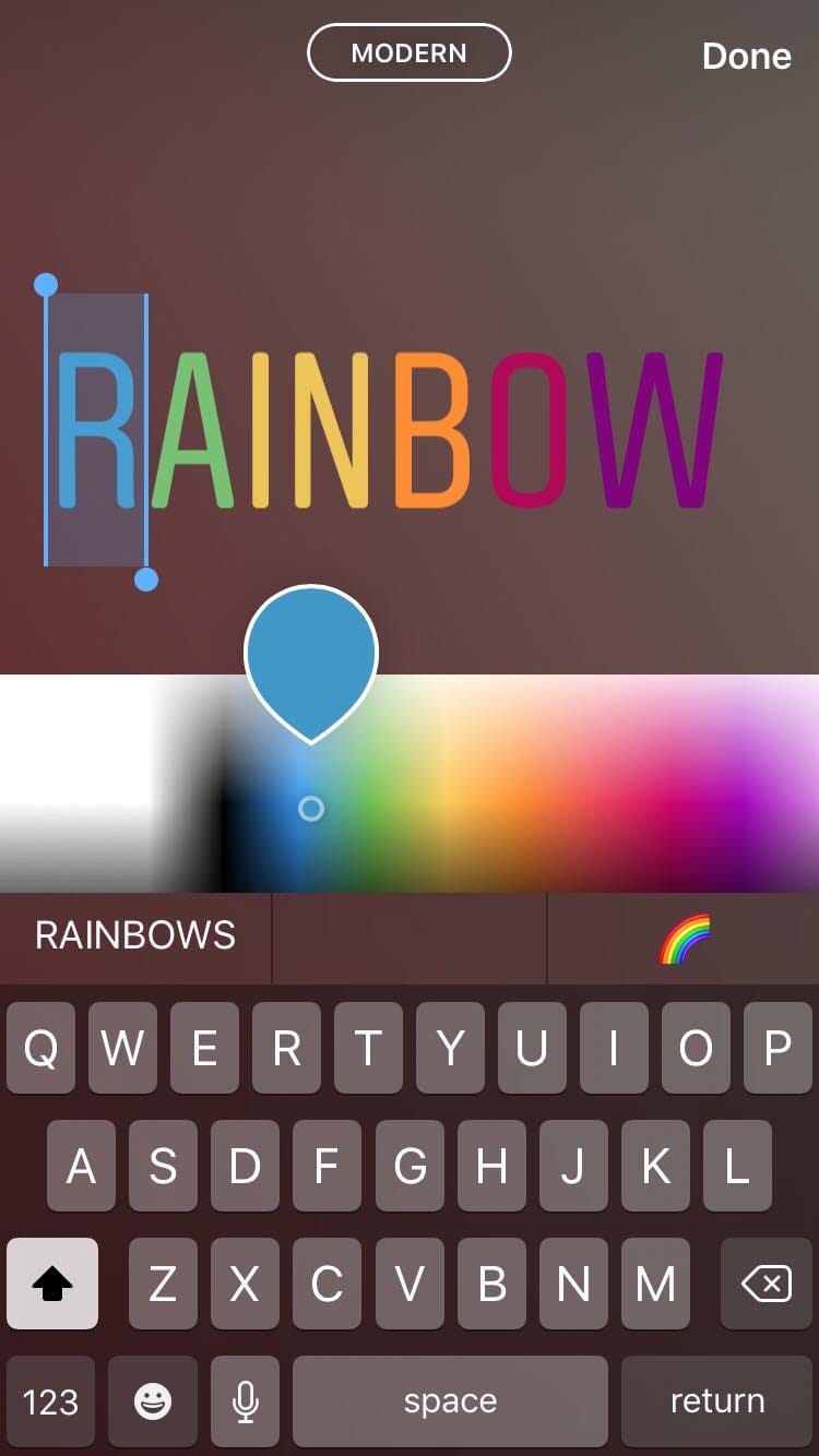 Kudos to those of you who commit to changing the color of each letter separately, my heart goes out to you. However, there’s a hack for that too. Add a colorful twist to basic text with a rainbow gradient with a couple easy steps.To start, have two fingers ready:1. Write your text