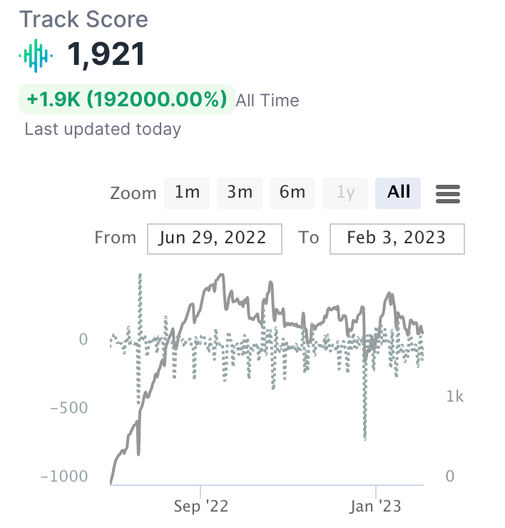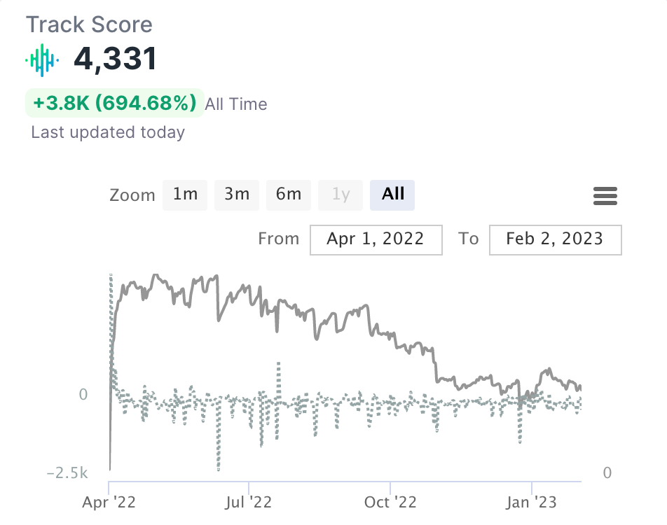 Change in Chartmetric Track Score from release date until February 2023 for GRAMMY nominees in this category: