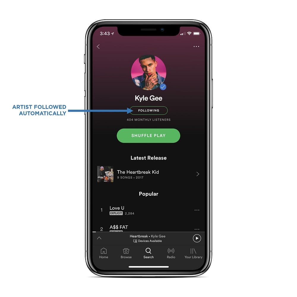 Anyone who clicks the button on your HyperFollow page will automatically follow you on Spotify.