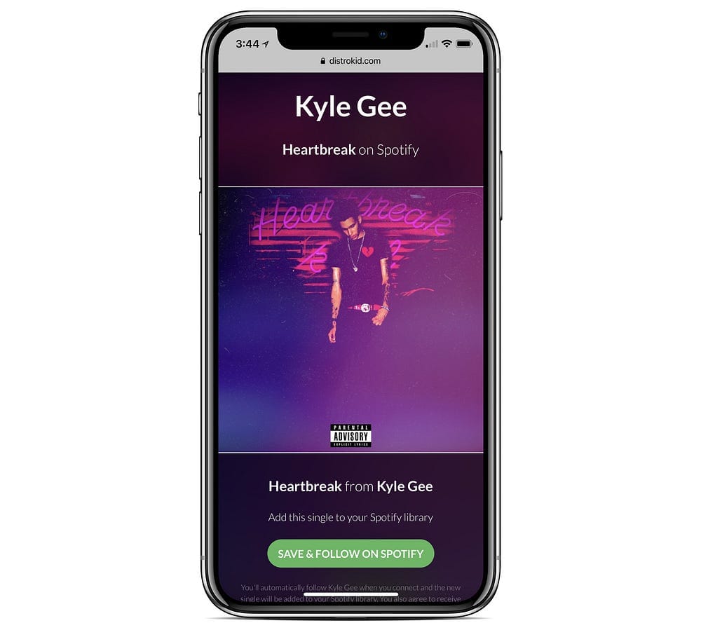 HyperFollow page for the Kyle Gee single, “Heartbreak”Here are the benefits via DistroKid: