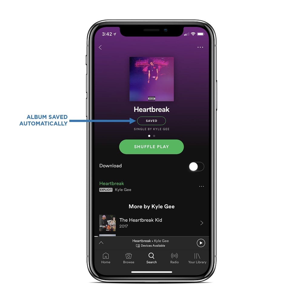 In addition to following your artist page on Spotify, whoever clicks the button will also automatically save your album to their Spotify library.