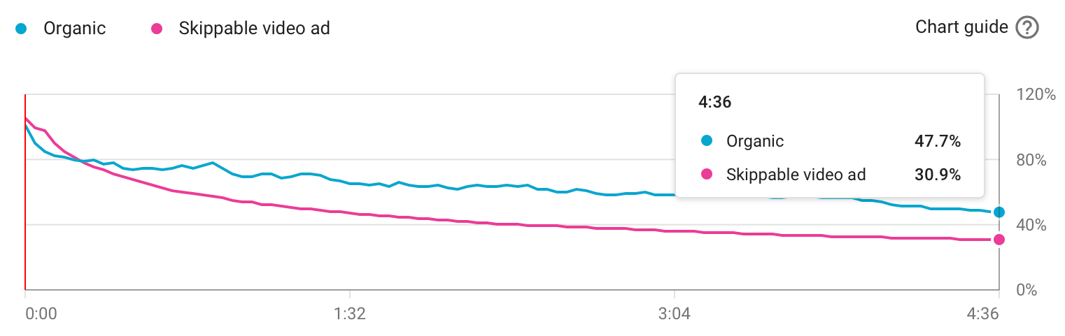 The like count checks out, but as you may have noticed in the screenshot above, the campaign only garnered two new subscribers. I’m not convinced that in-stream ads are the best way to grow a channel.