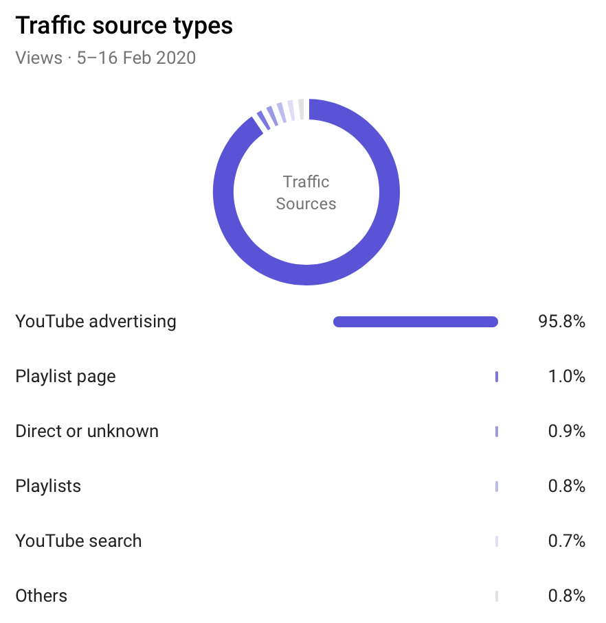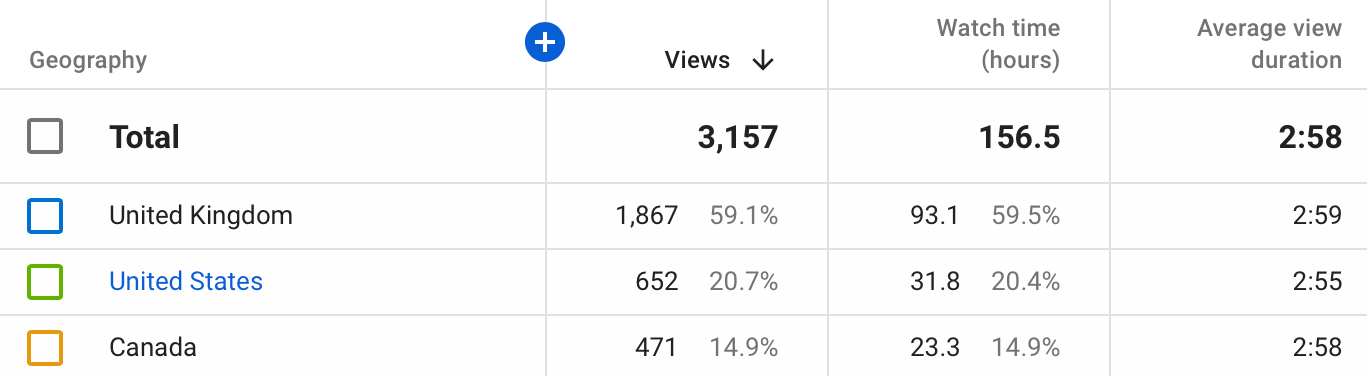 The views did indeed come from the three countries I selected. I’m guessing the algorithm favored the UK because view duration was slightly higher, or the cost per impression was lower, or both.