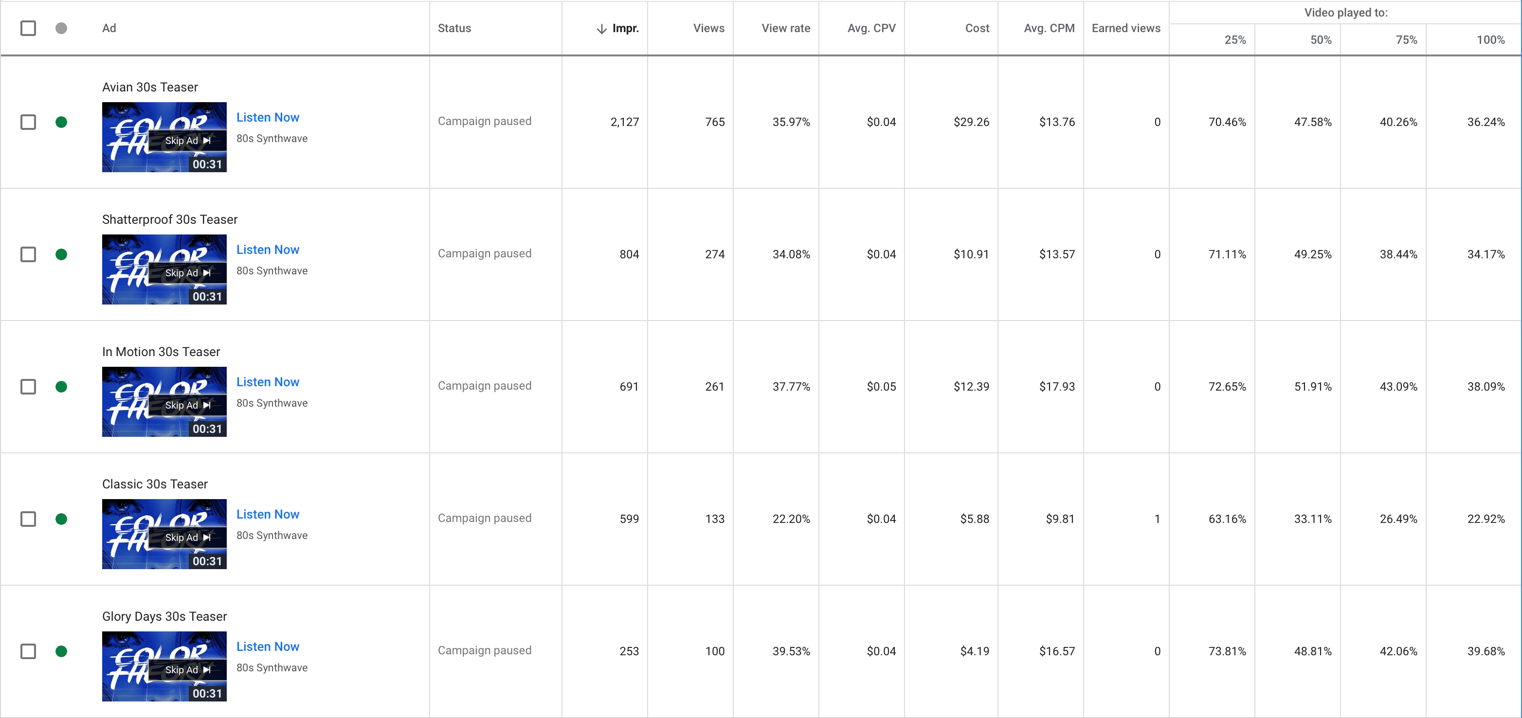 Less than a penny per view! Contrast that with my last skippable in-stream ads experiment: