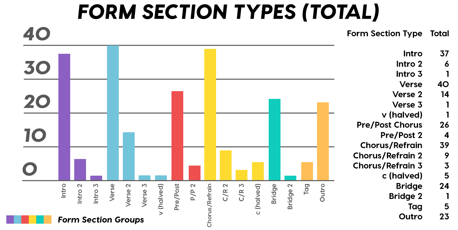 I really can’t think of any time I’ve seen or heard of a song without a Verse, Top 40 or otherwise. The gauntlet has been thrown down, kids. Get a song with no Verse into the Top 40 (or even up to a thousand plays on YouTube) and I will give you $5. Intros are a wee bit more prevalent these days than normal, but the real news story is the abundance of Pre-Choruses, and even a few Post-Choruses — once only mythical possibilities — pop’s songwriting cachet continues to grow beyond projections.
