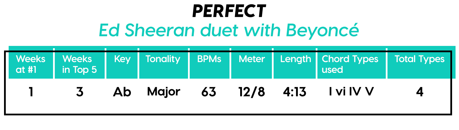 Hey look it’s Ed Sheeran again with the last of our twelve #1’s for 2017! This time he’s got a Pre-Chorus section that changes about half the lyrics to make it kind of this Pre-Chorus-Verse type thing. Can’t remember when I’ve seen something like this before, at least not to this degree of lyrical tinkering.