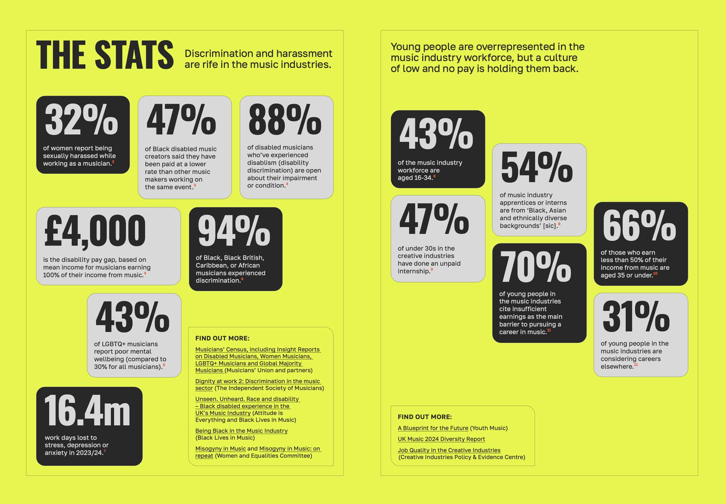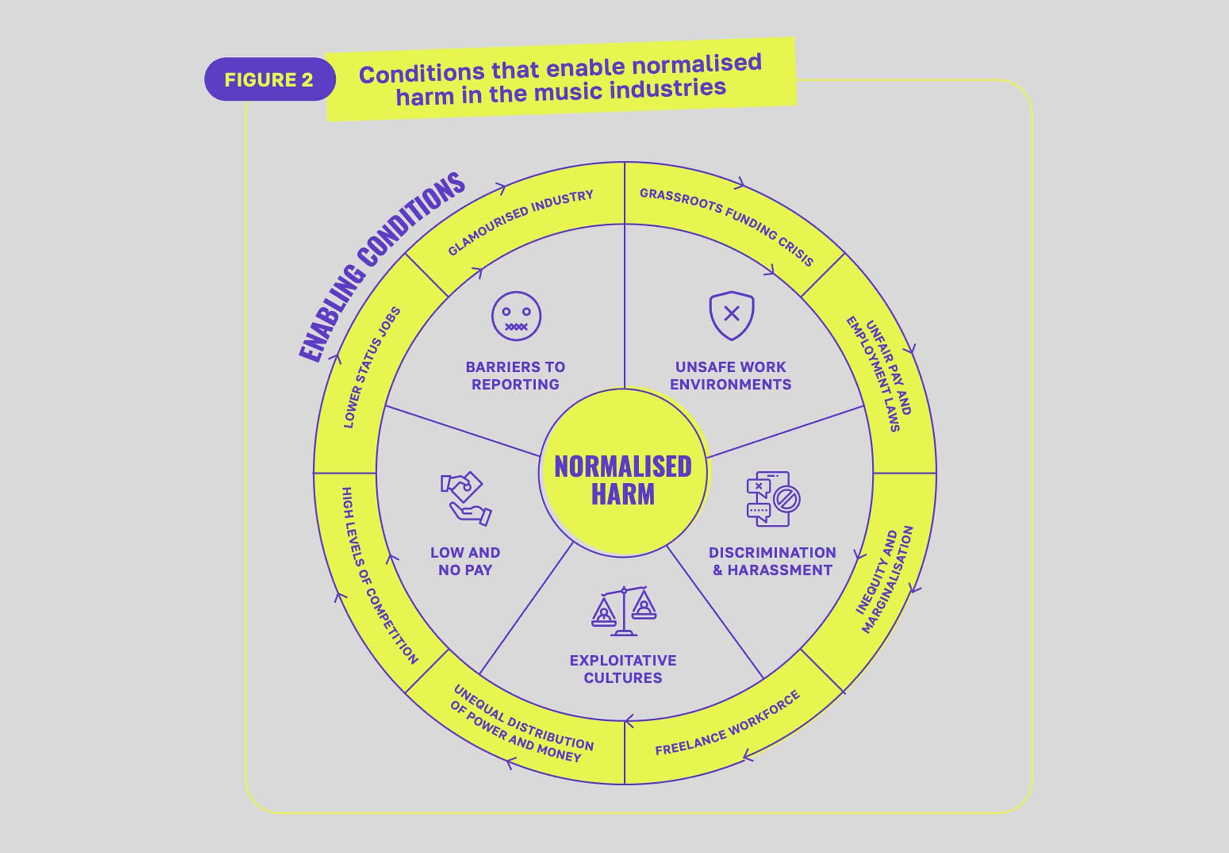 Built from testimony of 19 young people across the industry, the report illustrates how what many dismiss as “just the way it is” amounts to a pattern of normalized harm woven into the fabric of live and grassroots music culture.