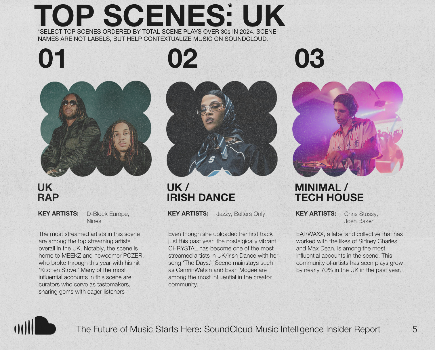 This, he says, reflects diverse inspirations and interests: “Genre isn’t always the kind of divide it has been — and I think we’ll see more artists and fans embrace eclectic sonic palettes.” Whichever direction they choose to go in, SoundCloud remains a uniquely unrestricted home for communities to grow.