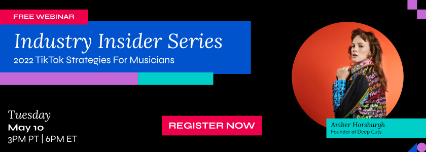 Sign up and join us fpr this FREE WEBINAR today Tuesday, May 10 at 3 pm PT | 6 pm ET in which Amber Horsburgh will share a case study of how her client, artist-songwriter ASTON, grew to 1M TikTok followers in 9 months and skyrocketed her music career–all without a label or generous marketing budget.