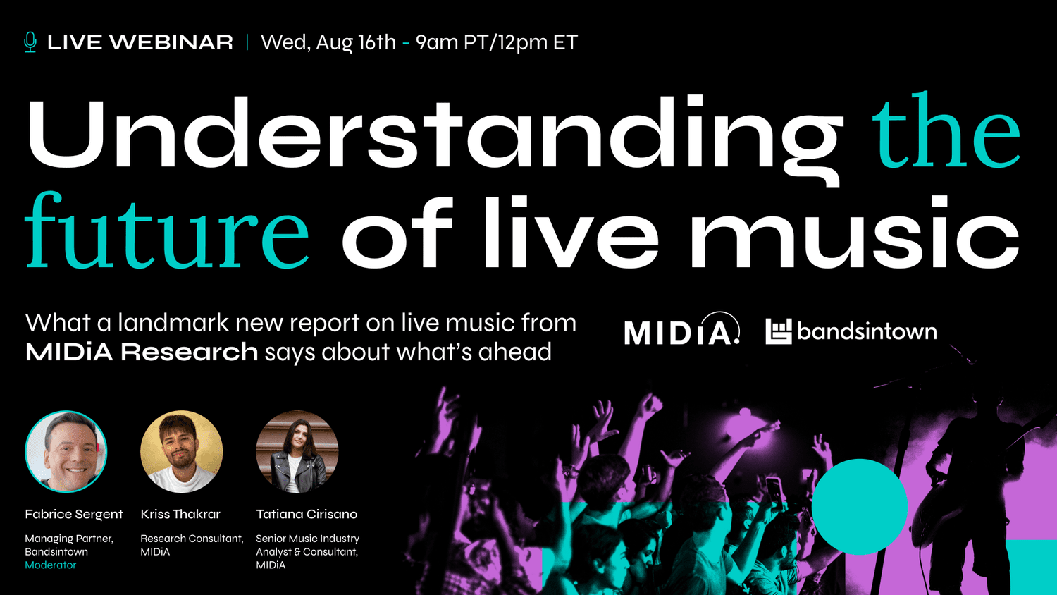 Bandsintown and MIDiA are presenting a free webinar, “Understanding The Future Of Live Music,” this Wednesday, August 16th.