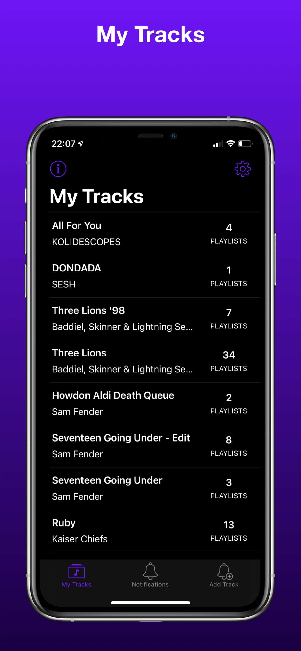 As well as official Spotify playlists, the app also monitors Spotify’s Viral 50 and Top 50 Country Charts from around the world.