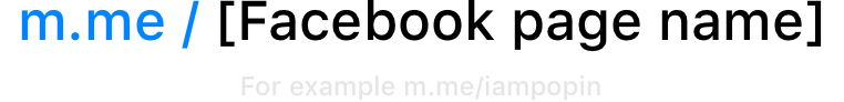 Generate your m.me link by inserting the name of your FB page after the m.me part of the URL: e.g. https://m.me/iampopin.\
