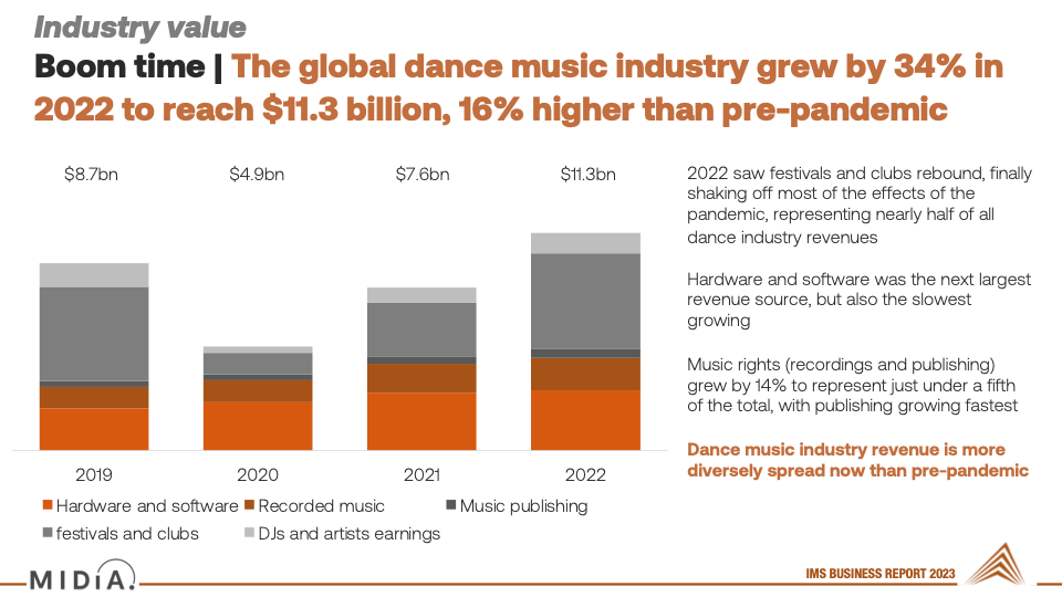 The result was that the total revenue of the global dance music industry rose 34% in 2022 to hit $10.2 billion.