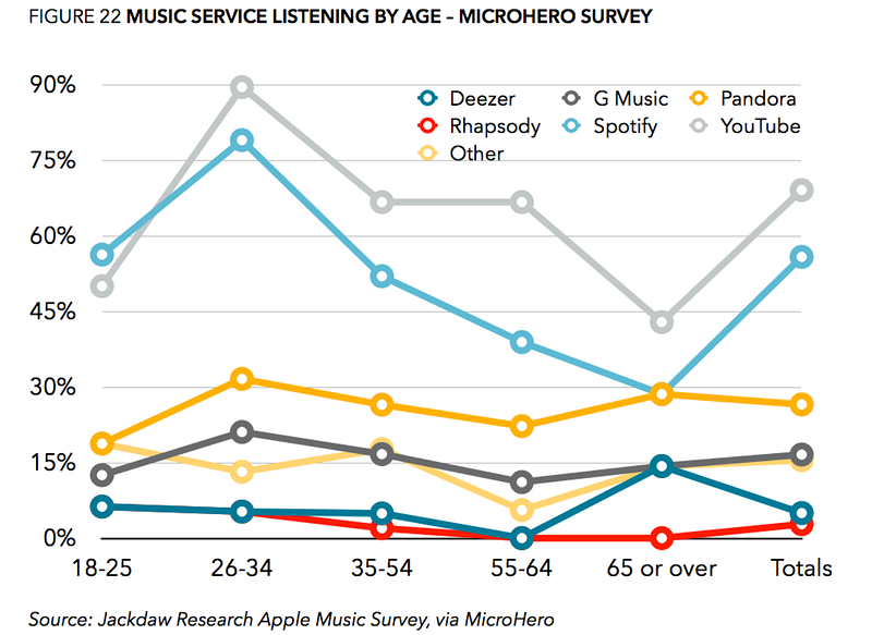 Guest Post by Heather Willensky With Troy Carter heading up Spotify’s Creator Services, the next land-grab for subscriber loyalty looks set to take place over album exclusives. This is great news for Millennials and Gen Z, who can expect a string of windowed albums to vie for their coveted attention. According to a 2015 study from Civic Science, 61% of Spotify’s listeners are 29 and under. There is no question that driving subscriptions, conversion and loyalty among young listeners is hugely important to the success of any streaming service. But there is also a huge older music loving demographic, and they shouldn’t be ignored.Given the billion dollars streaming services have collectively lost, it would seem practical to incentivize consumers whose deeper pockets might lead to subscriptions, rather than chasing listeners inclined to replace Top 40 radio with freemium tier services. There are ample opportunities to engage this audience, but the services are going to need to take a different tact.An October 2015 music survey by Jackdaw Research observed that aside from Pandora, most streaming service’s biggest listener demographic is under 35. This is unsurprising given that most people over 35 have had to purchase their favorite albums on at least 2 different formats, and likely own at least one apparatus that can still play them.