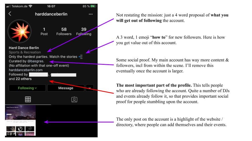 Last week I announced the launch of Hard Dance Berlin. Since then, I have been spending a few minutes each day building up the community around it by leveraging Instagram stories (@harddanceberlin).