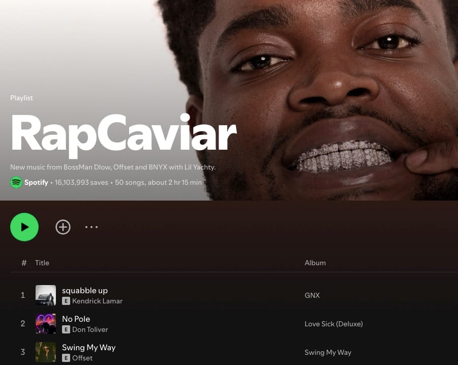 Examples: Spotify’s RapCaviar, Hot Country, and Viva Latino