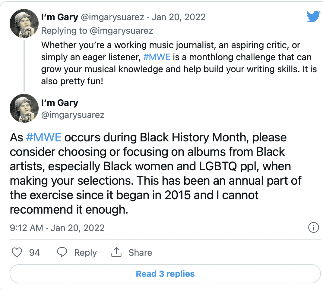 Become a better writer this February by participating in the 2022 installment of #MWE, otherwise known as the Music Writer Exercise.
