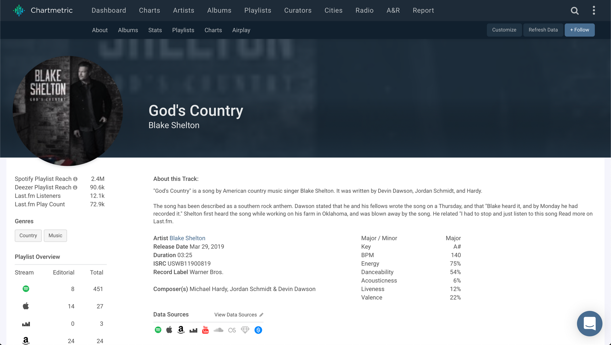 Through a combination of social and streaming data, the good people at Chartmetric cast some educated guesses on who would come out on top at this year’s Country Music Awards – guesses which proved to be mostly correct.