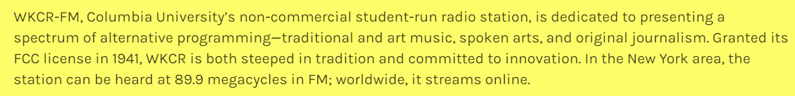 These are the kids that love radio, very likely intensified by last week’s events. And when you read the key part of WKCR’s stated mission, you can’t help but want them working for broadcast radio stations across America: