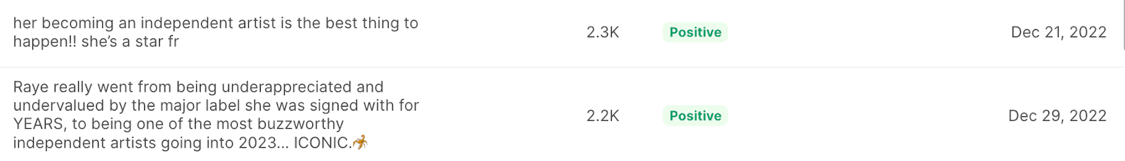 Similar to Discovery, measuring Advocacy can be challenging. However, you can know how your super fans feel about your artistry by monitoring positive sentiments, such as comments and mentions on social media platforms. You’ll see fans calling for everyone to stream you, buy your music, and make sure you hit number one. Measuring the number of fans attending your concerts and tracking ticket sales reflects your fans’ support and advocacy for your live performances.