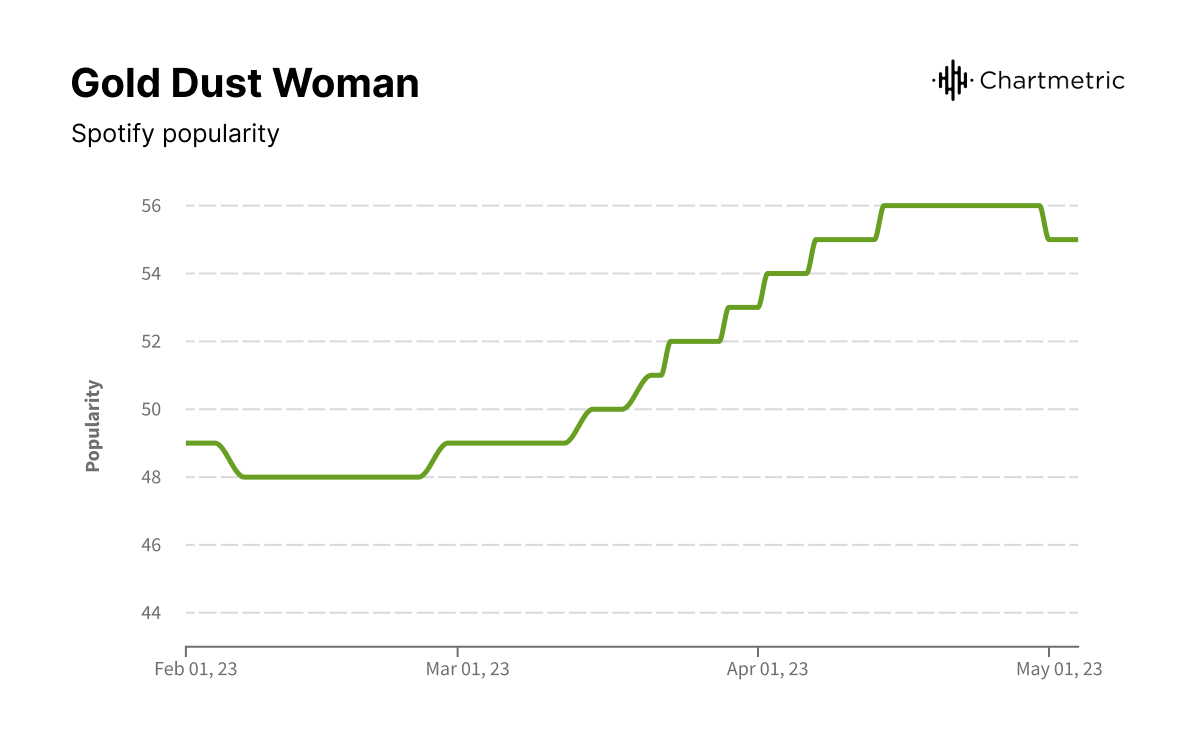 When the film and soundtrack premiered on March 11, 2022, streaming numbers grew rapidly to the point that the band ranked in the top 200 artists in the world based on Chartmetric score. However, in the months that followed, their numbers quickly declined as they had no new releases or social media presence. While “Daisy Jones & the Six” is still trending because it’s only been two months since their launch, we can expect their trajectory to follow a similar path to the one of 4*Town.