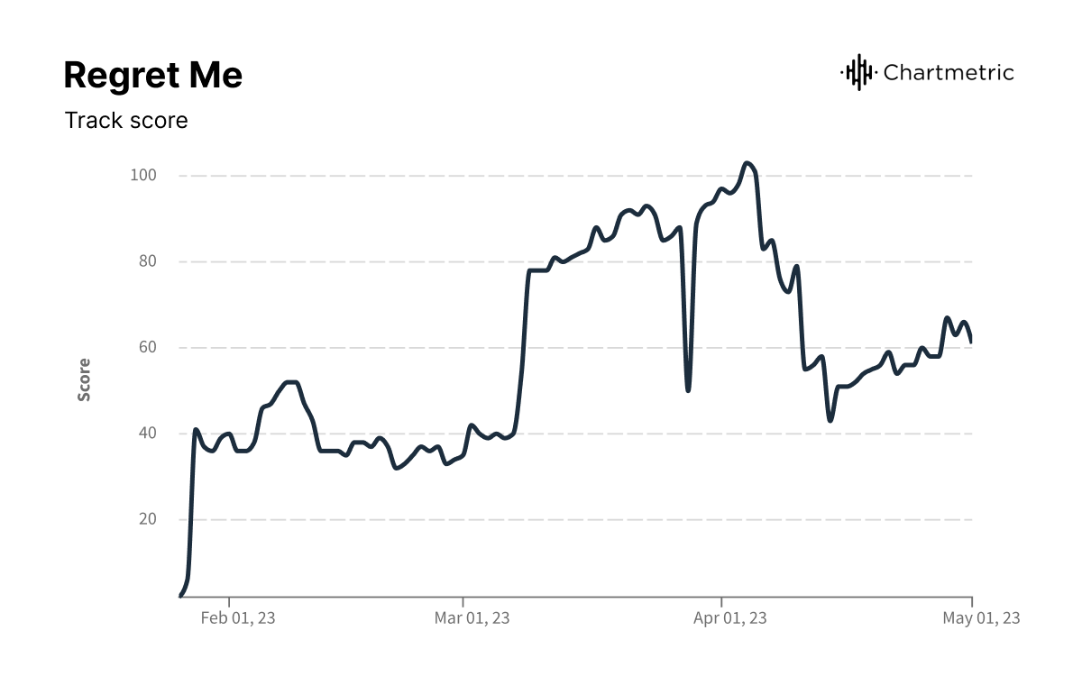 The Chartmetric score of Daisy Jones & the Six’s debut track spiked immediately when the song was released, plateaued a bit, and shot up again around the time of the Amazon series’ release and Aurora.