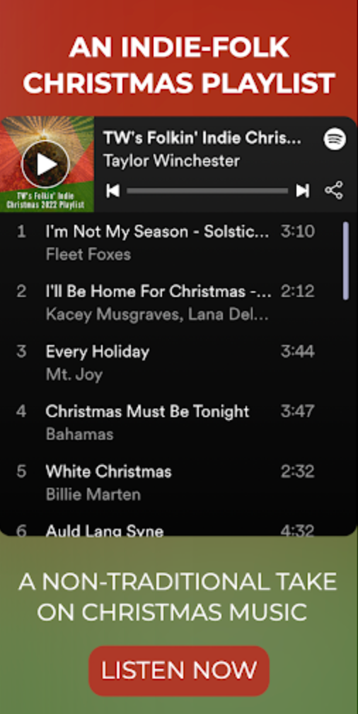 Found.ee has a great feature that lets you design your own found.ee HTML5 ad to share your playlist wherever you’d like. Even if you don’t celebrate Christmas, you can make a playlist for whatever holiday you like. You can even make an anti-holiday playlist if that’s more your vibe. Here’s an example of Found.ee’s feature below: